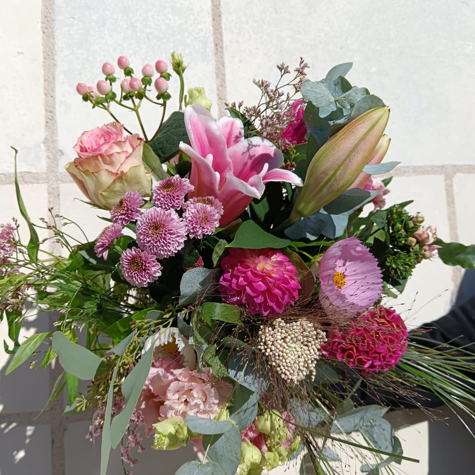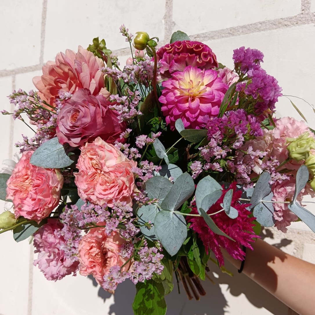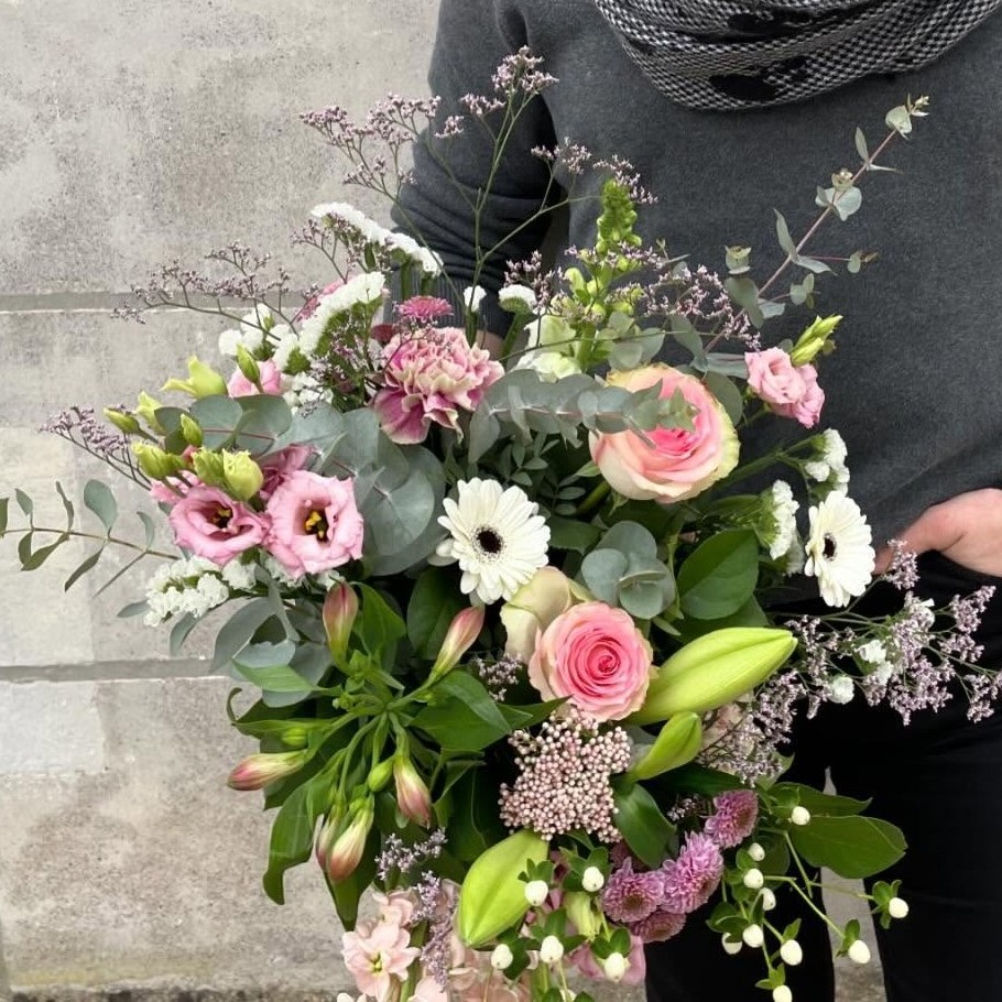 Chaque bouquet est réalisé à la main dans les tons indiqués, avec des fleurs fraîches et de saison, selon les arrivages.