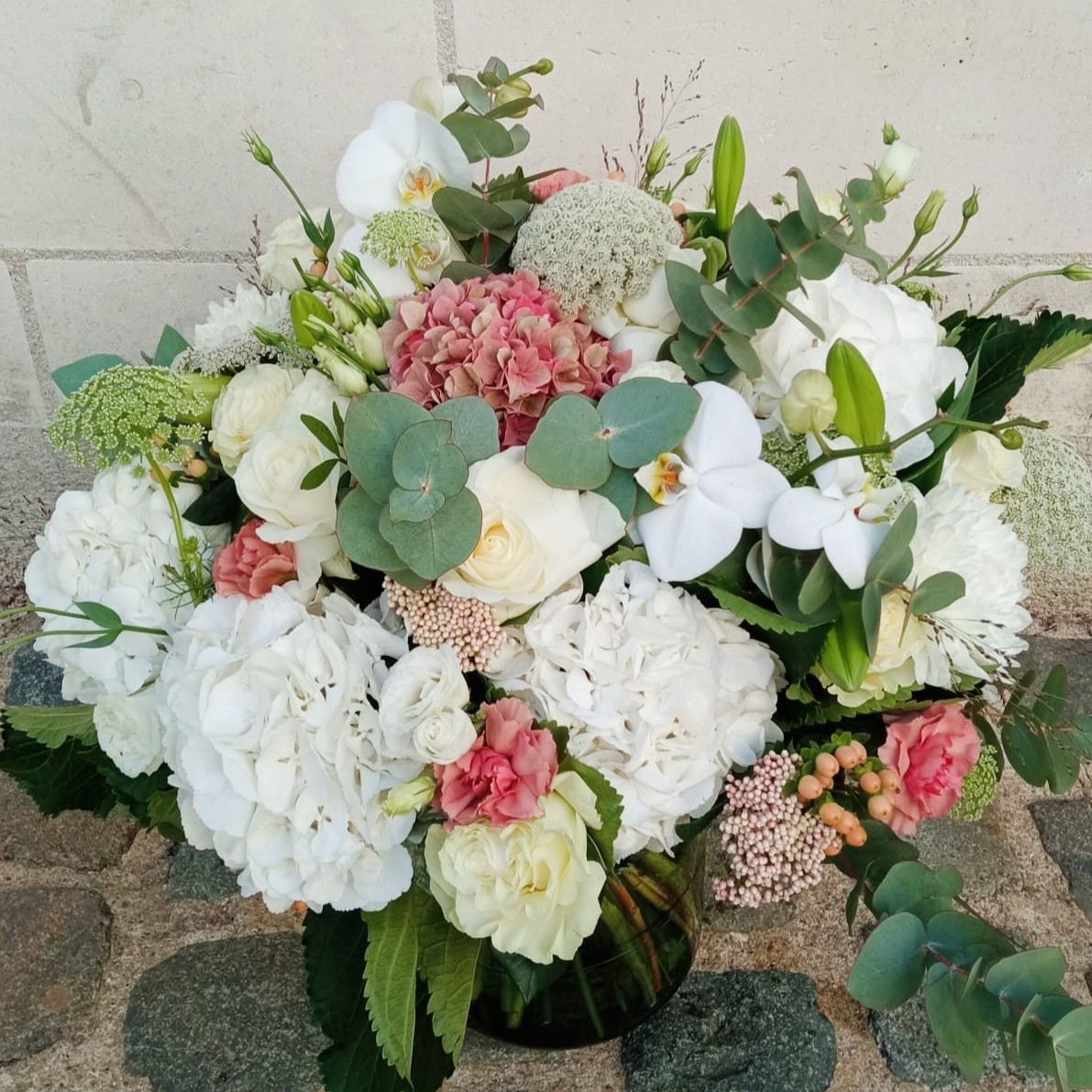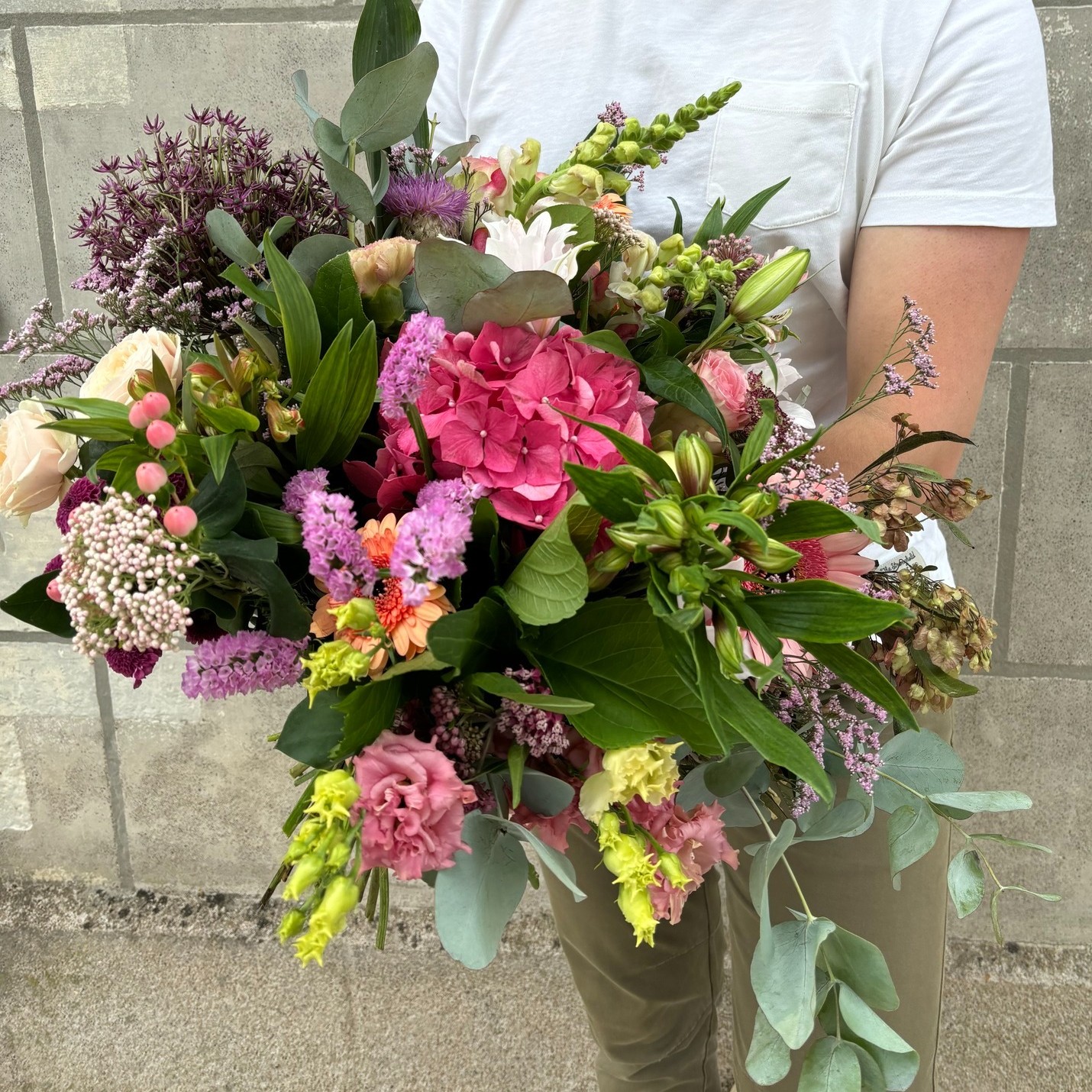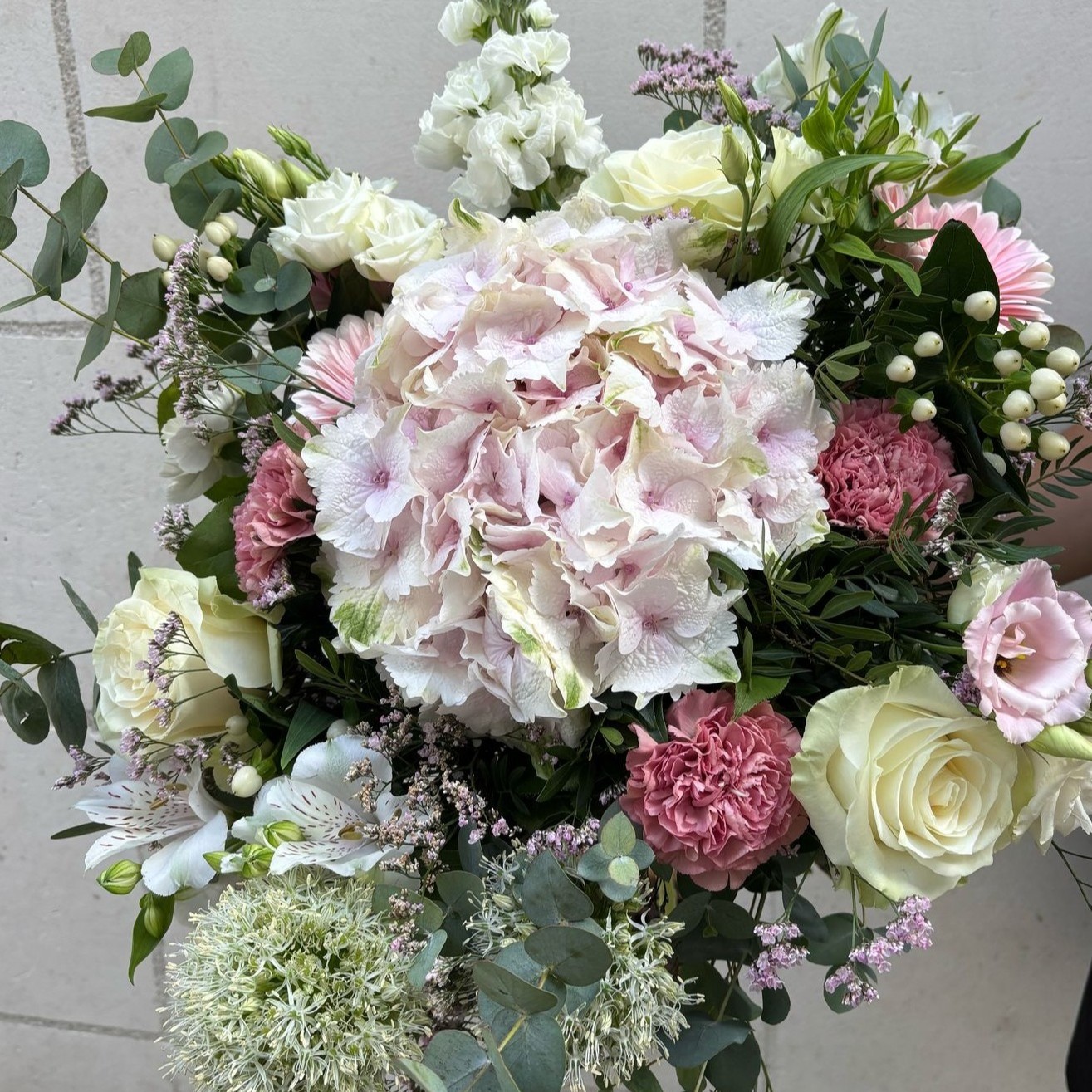 Chaque bouquet est réalisé à la main dans les tons indiqués, avec des fleurs fraîches et de saison, selon les arrivages.